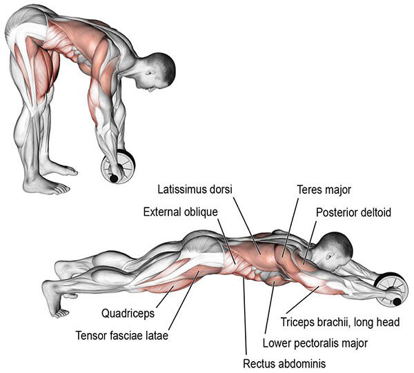 چرخ شکم خارجی (اب رولر) معمولاً از ترکیبی از پلاستیک سخت، فوم و فلز ساخته میشود. چرخ اصلی معمولاً از پلاستیک با کیفیت و مقاوم ساخته شده و ممکن است دارای روکش آجدار برای جلوگیری از لغزش باشد. دستهها معمولاً از فوم برای راحتی و جذب عرق پوشیده شدهاند و هسته داخلی آنها از پلاستیک سخت یا فلز است تا استحکام لازم را داشته باشند.