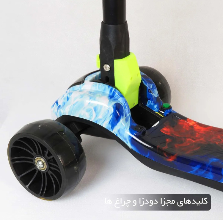 جنس اسکوتر سه چرخ موزیکال و چراغدار و دودزا چراغدار مارک اسکوتر تکی